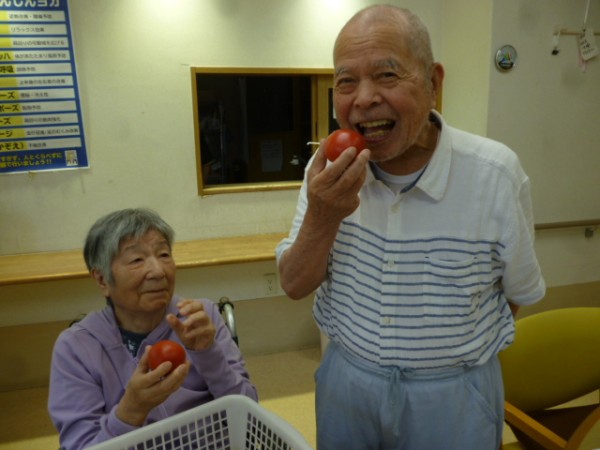 中庭の小さな畑に”ナス” ”トマト” ”ピーマン”が