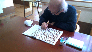 こちらの写真は毎日自主的に脳トレを行っている利用者様の様子です。