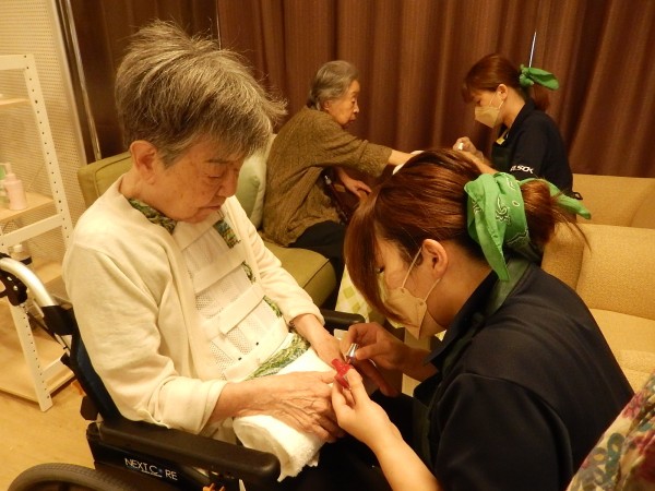 本日、爪の調子が悪かったご利用者さまには、雰囲気をご一緒に楽しんでいただきます(#^^#)