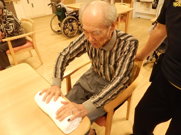 皆さんの楽しい雰囲気や会場のムードで、男性ご利用者さまがネイルにとても興味を持たれ、「どうしてもしてネイルを欲しい!」、と(^▽^;)