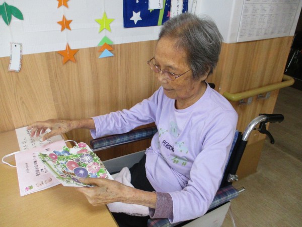 遠方にお住まいのご家族様より夏らしい朝顔付きのメッセージカードが届きました。じっくりと何度もご覧になっていらっしゃいました。