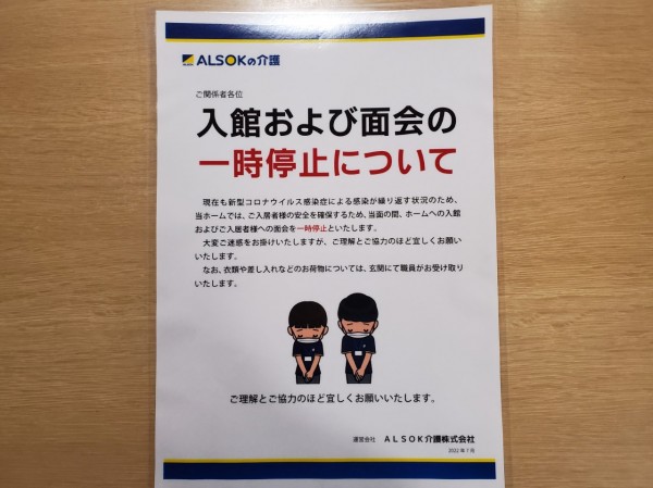 ホームへの入館およびご入居者様への対面での面会を一時停止といたします。