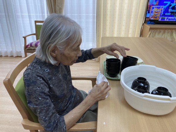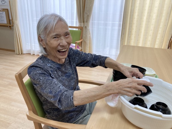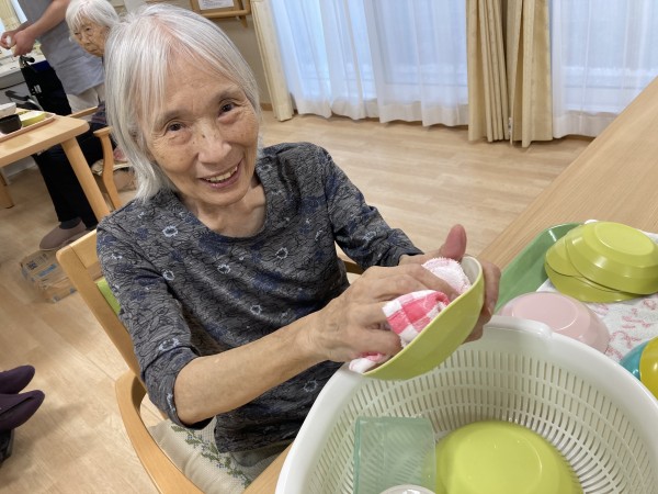 食器拭きのお手伝いをお願いすると快く引き受けてくださり綺麗に拭いてもらっています(*^_^*)