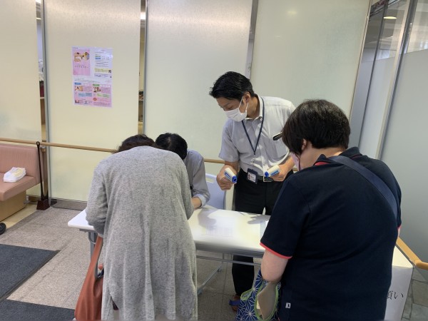 西尾久担当の三澤課長も、いらした方の検温をしています。