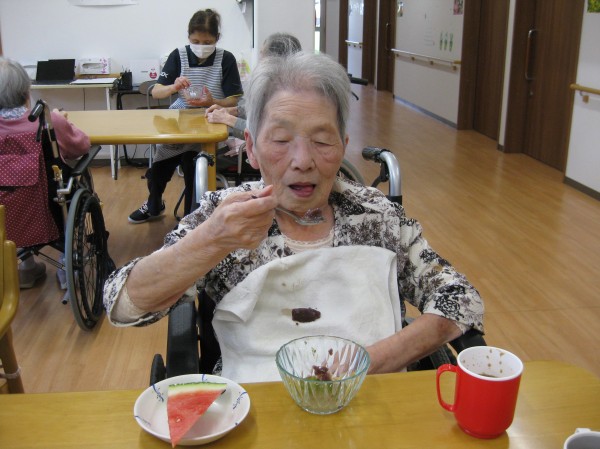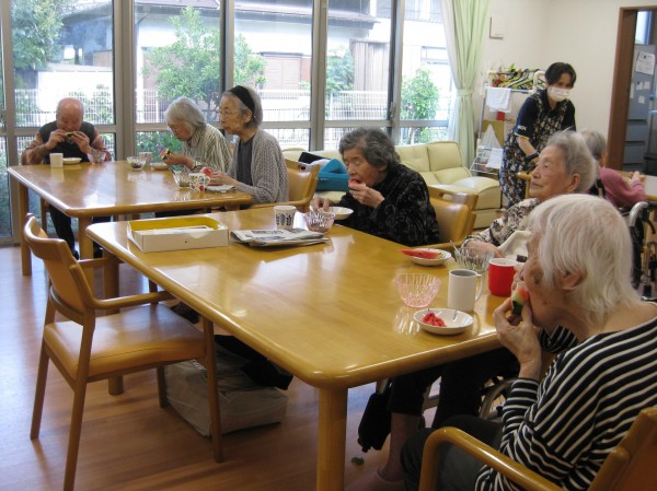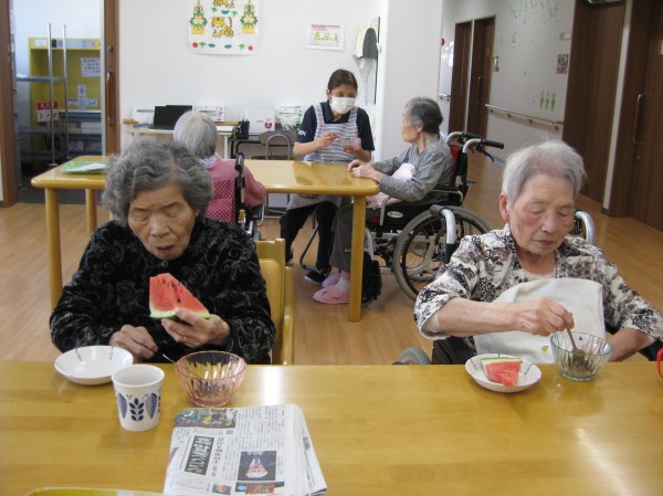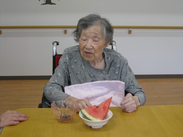 こんにちは!グループホームみんなの家・あきがせの介護ブログです!よろしくお願いいたします。今日はおやつにスイカを召し上がりました( ^ω^)・・・