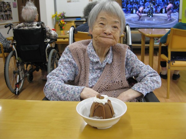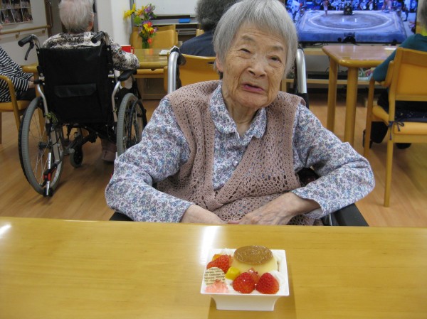 お誕生日会おめでとうございます! 7/15に89歳になりました。いつまでもお元気に健康でお過ごしになられますようにお祈りいたします!(^^)! 息子様と娘様からモンブランとプリンアラモードのケーキにゼリーのプレゼントに嬉しそうでした( ^ω^)・・・ 早速頂いちゃいました????