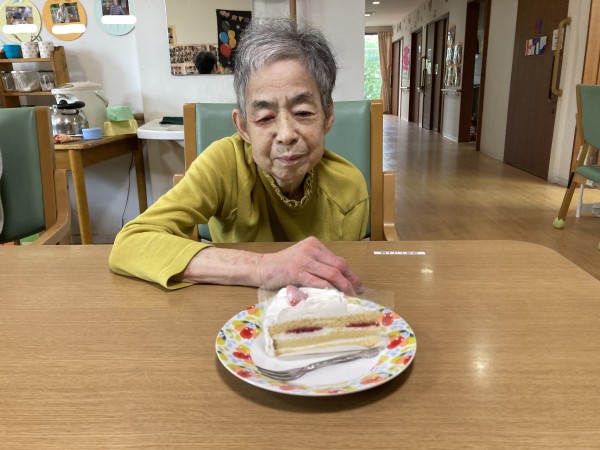 ケーキを食べて素敵な笑顔ですね♪