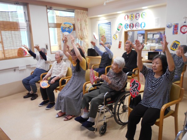提灯や出店の飾り付けをし夏祭りの雰囲気が出て