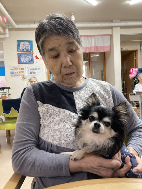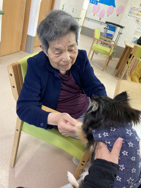 最初犬が怖いと言っていた方も皆様が「かわいい」と触っていると、触りはじめ「この位の小さいワンちゃんならかわいい。」と仰られておりました。