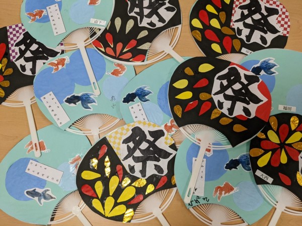 そこで気分をあげるために、銘々色とりどりの花火と、涼しげな金魚ちゃんをあしらったうちわを制作致しました!!