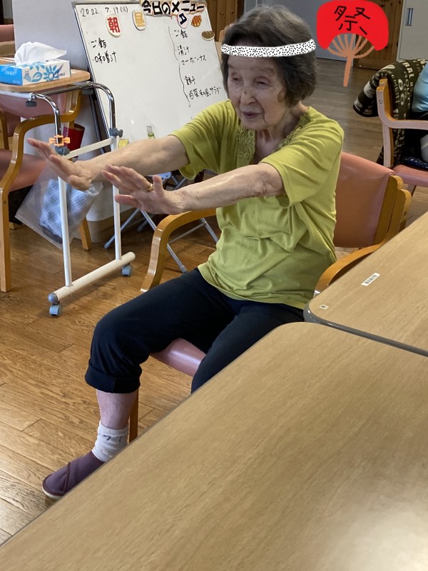 盆踊りを取り入れた体操をしますが、それに合わせる曲は誰もが知っている、あの民謡!