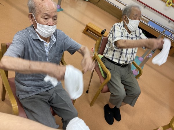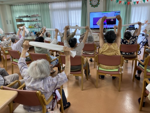 タオル体操なので、皆様タオルを用意して、体操開始です♪