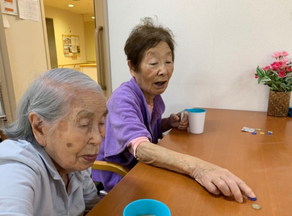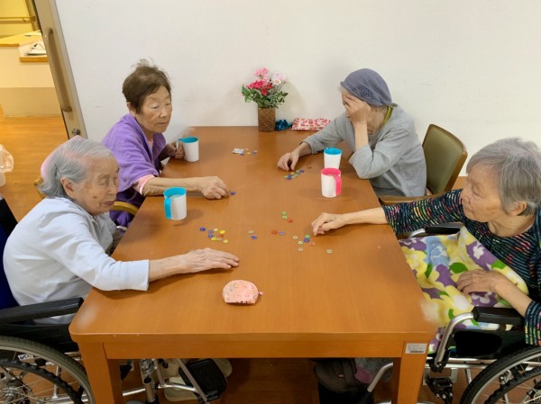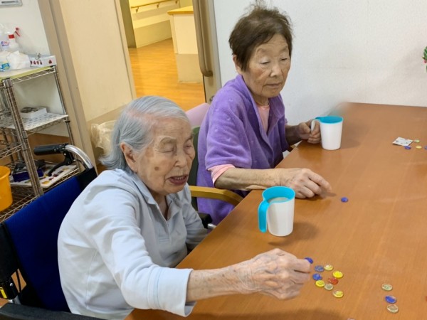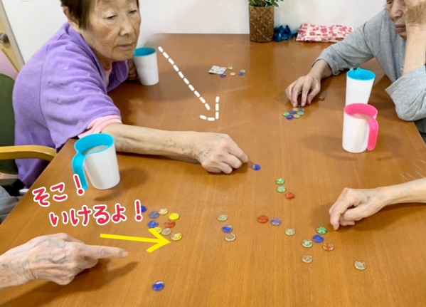 皆様、お飲み物にも手をつけず夢中におはじき合戦です。