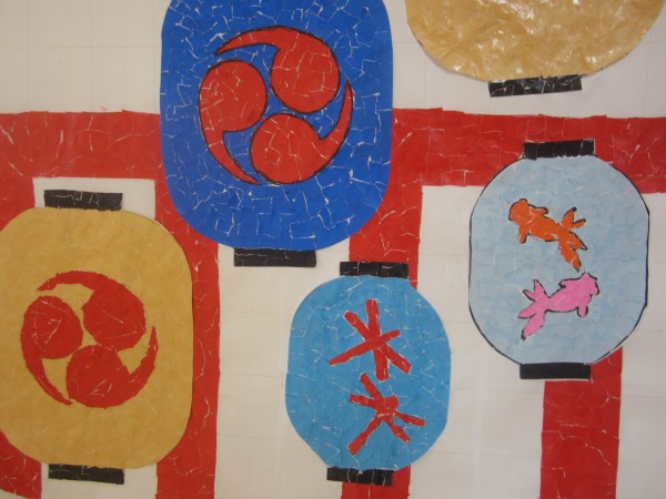 ★☆三橋6丁目にて夏祭り提灯の折り紙-貼り絵,飾り付けレクリエーション②(^^♬