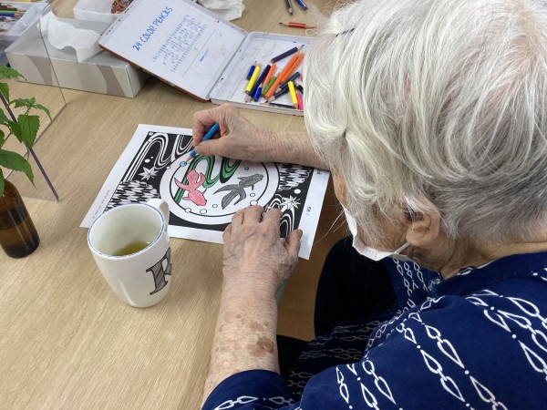 午前中の塗り絵コーナー