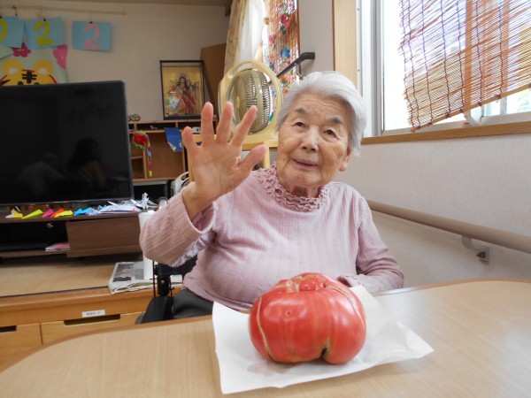 そして中庭の畑では 大きな”トマト”の収穫もあり