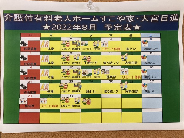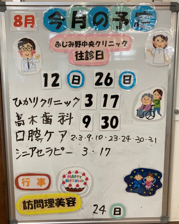 また、一部のご入居者様ですが、8月3日(水)に4回目のコロナワクチン接種を行う予定です。