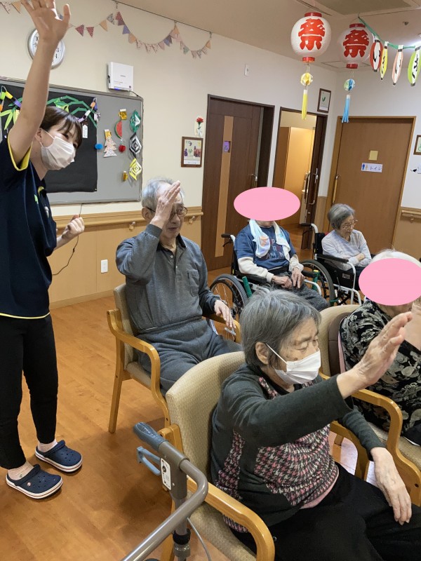 時には利用者様とお話をしながらゆっくり過ごしたり、元気に体操をしたり。。。
