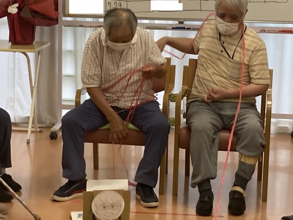 引っ張りゲーム、これに関しては素早く紐を引っ張る方がいれば、ゆっくり引っ張る方もいれば、ちょびちょびと引っ張る方と個性豊かにいました。