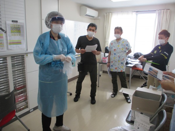 去年も行いましたが、物品の在処からガウンの着方や換気や物品の消毒などなどマニュアルを作成しスタッフ全員に勉強会を行います。