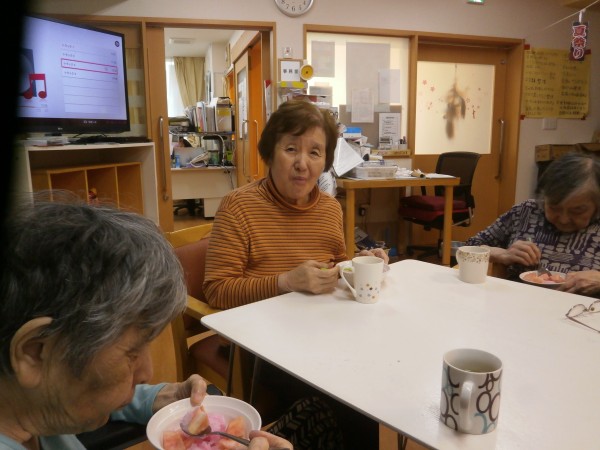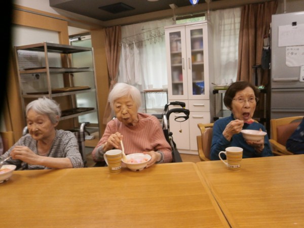 3. 納涼祭その④ おやつはイチゴのかき氷!差し入れの桃をのせで豪華~!