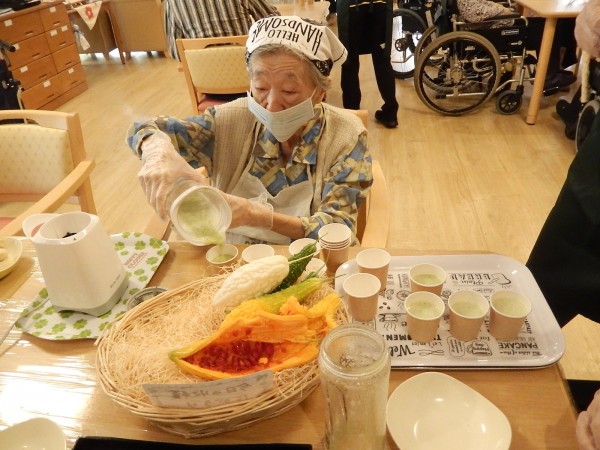 参加したご利用者さまの人数分をカップに注いだところで、“その2”に続きます(^_-)-☆