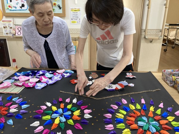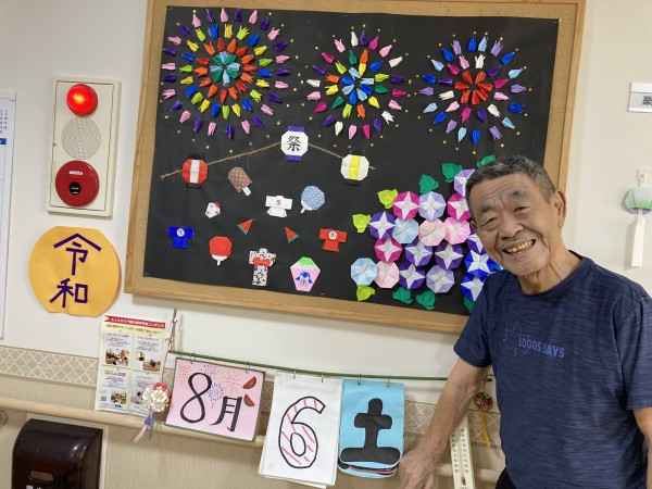 花火とお祭りの様子、朝顔の花もきれいですね。