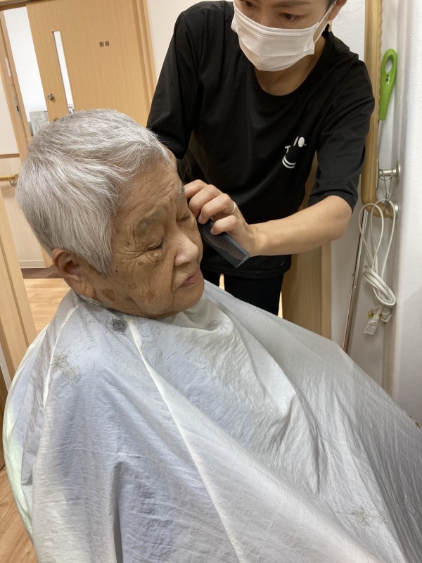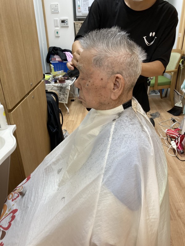 待ちに待った理美容の日がやってきました。あっという間に髪が伸び、鏡を見ては、「こんなに伸びちゃって」と気にされるご利用者様。順番が来ると、ウキウキとカットをしてもらい、中にはキレイにカラーリングしてもらう方。皆さんそれぞれにスッキリ、さっぱりして、暑い残暑も乗り切れそうですね。