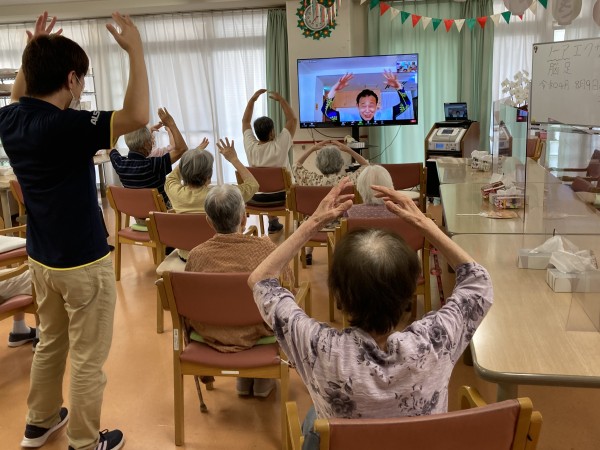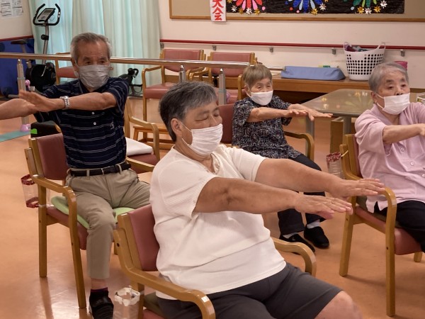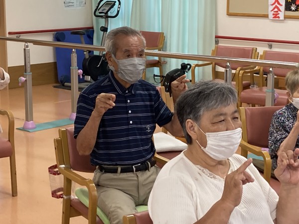 暑い中でも岡田先生、体操の程ありがとうございます!その元気にご利用者様もしっかり先生の動きについていき、声もしっかりと挙げていました( ^)o(^ )