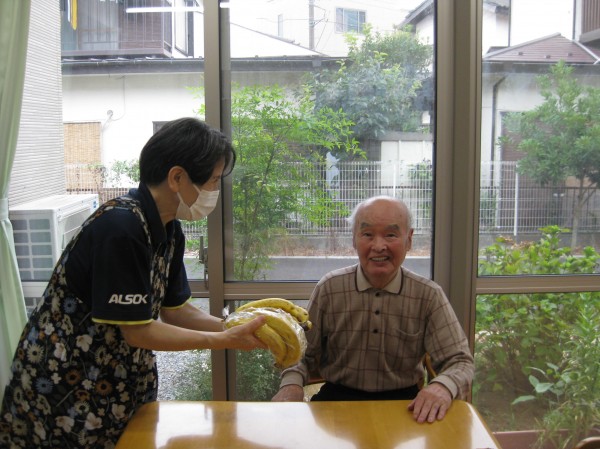 こんにちは! グループホームみんなの家・あきがせの介護ブログです! よろしくお願いいたします。 オーナー様からバナナの差し入れがありそのご様子をお知らせいたします!!
