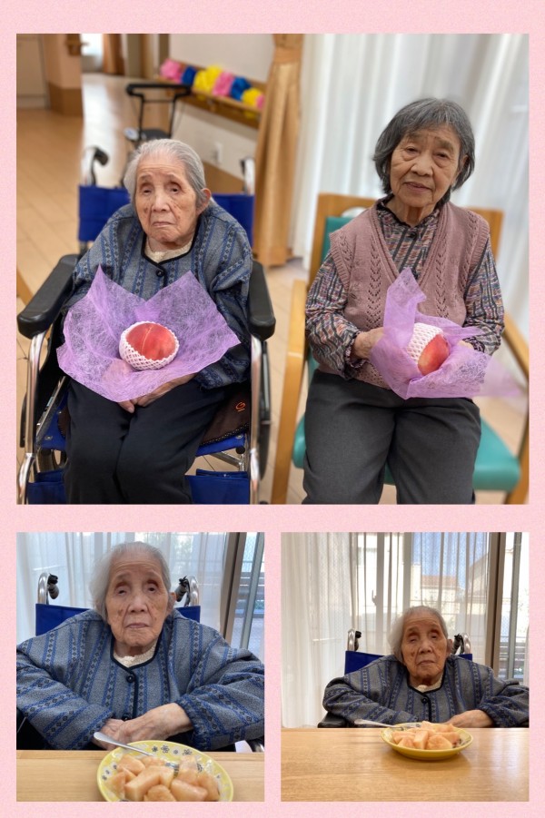 ご家族様より桃が届きました(^^)!立派でとっても良い香りがします♡(o^―^o)ニコ
