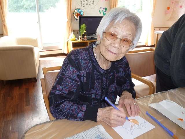 みんなの家横浜金が谷では、絵手紙レク、利用者様はじめての体験で、色とりどりの絵具でハガキに絵を描くのですが、