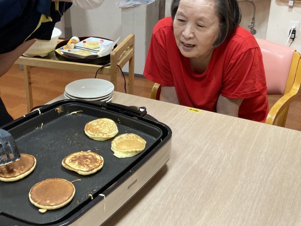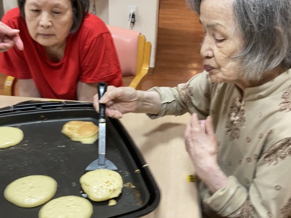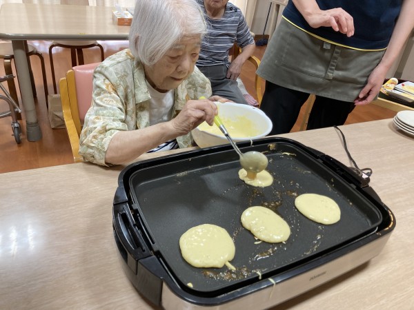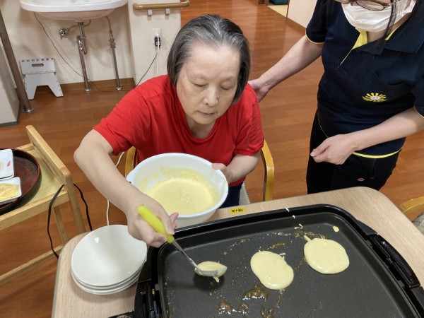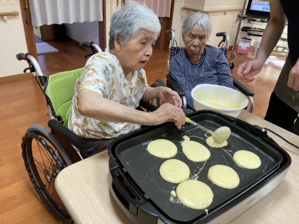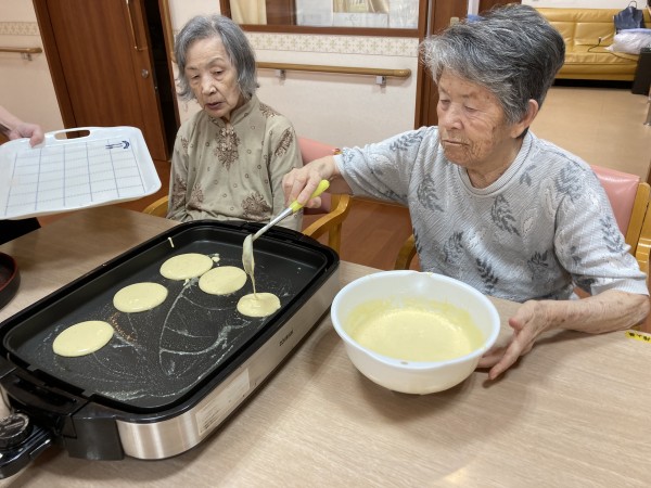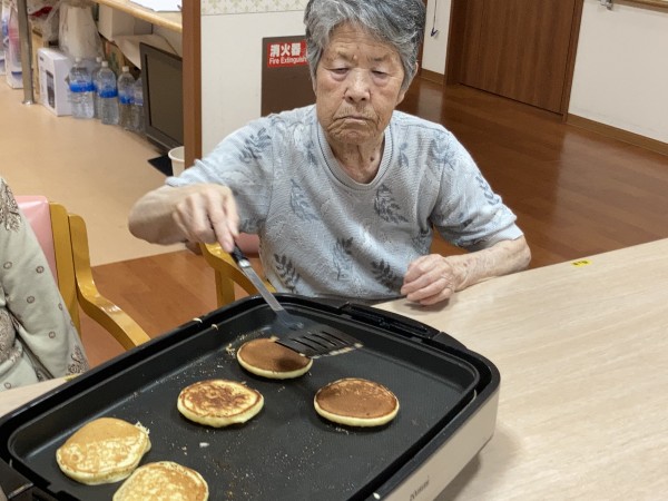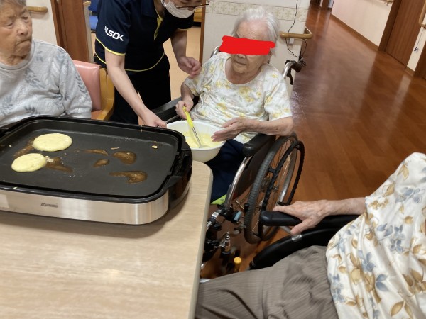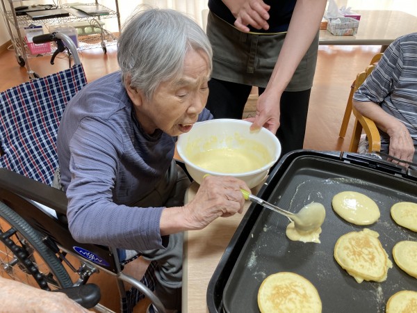 利用者様は「お好み焼きはよくやったけどね!」「ホットケーキはやったことないな~」と談笑しながら思い出話をされてます。