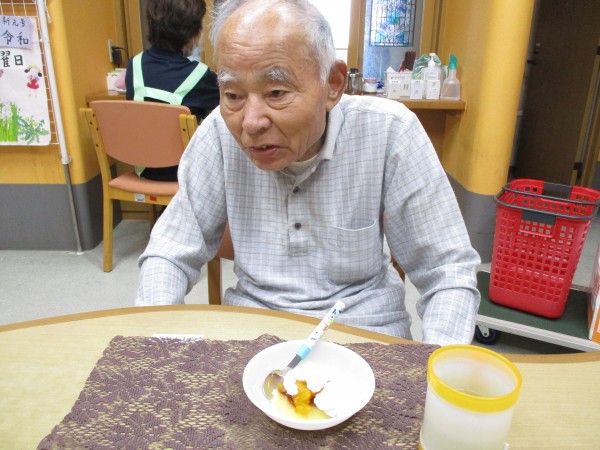 みんなでお祝いし、プリン・ア・ラモードを頂きました。