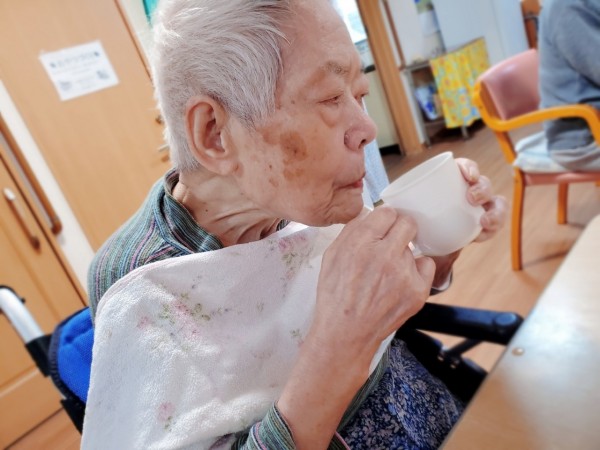 しっかりとご自身でカップを持たれ、紅茶を飲まれていました。