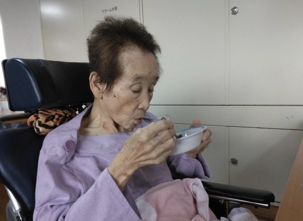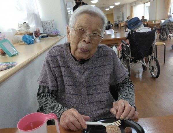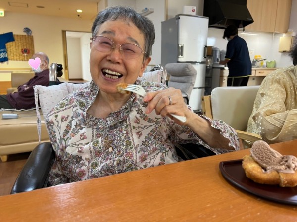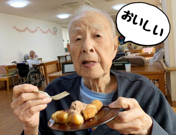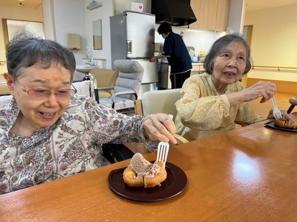ご入居者様は、パクパクとアイスクリームを楽しんでくれます。