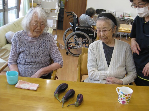 こんにちは! グループホームみんなの家・あきがせの介護ブログです! 様子をお知らせいたします!! 今日はナスの収穫を行ったご様子をお知らせいたします!!