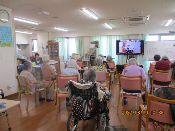 今日は岡田先生のリモート運動教室です。岡田先生は毎回元気いっぱいです。