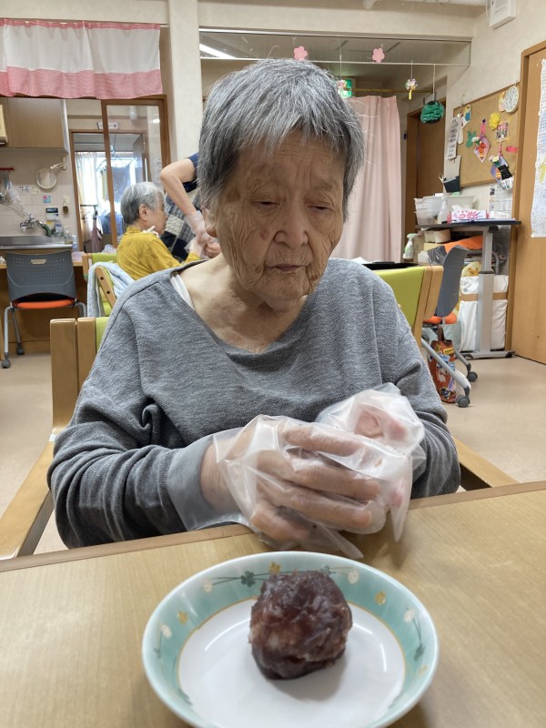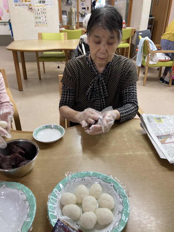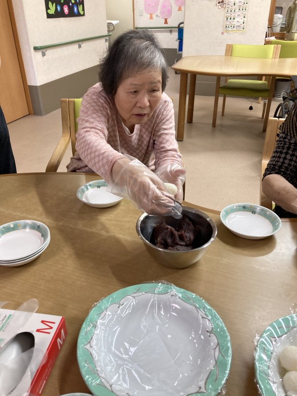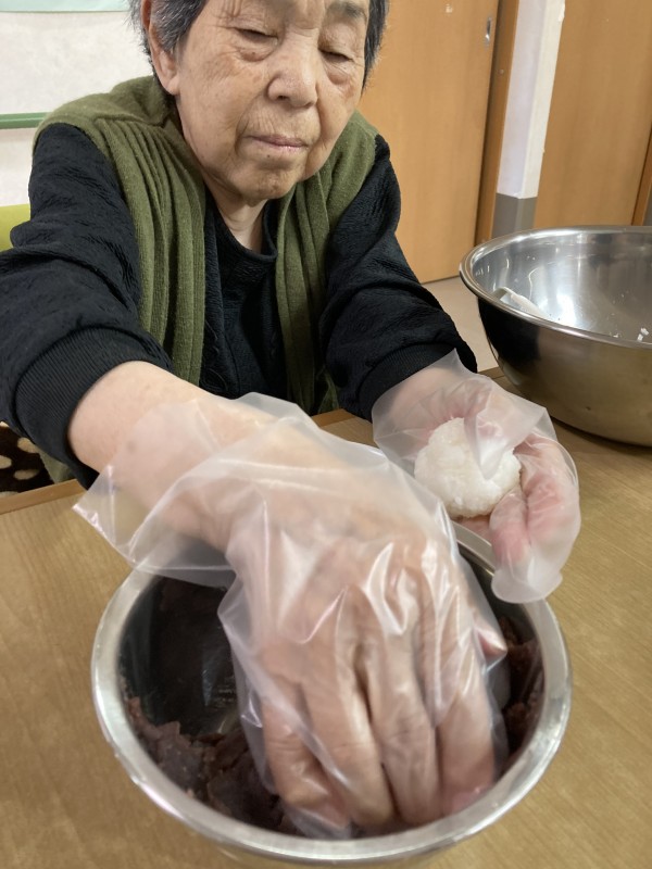 出来ない方には、餡子付けのみ。職員とつくりました。