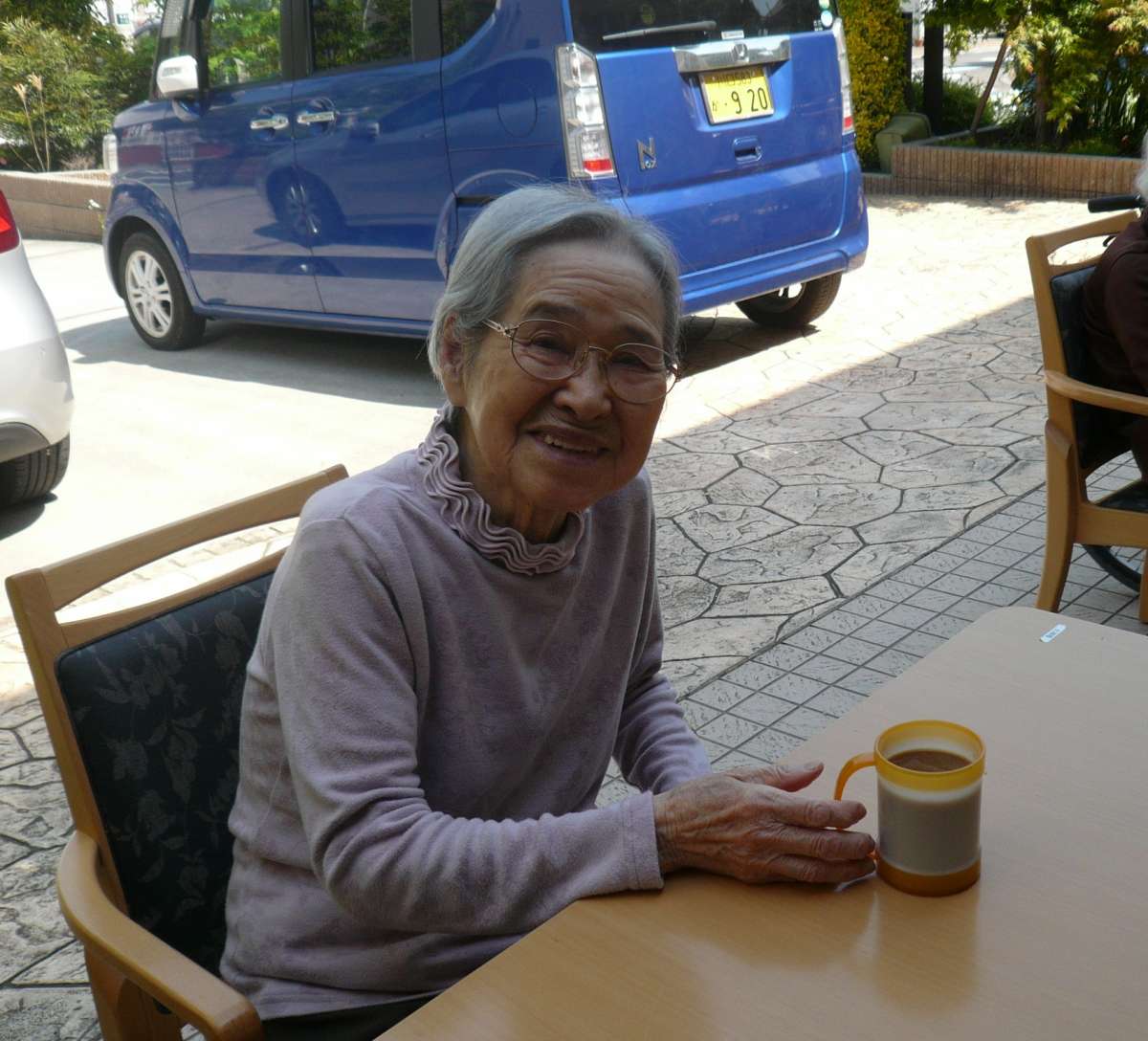 さて、みんなの家・東浦和3では、暖かい日を狙って施設のエントランスでカフェを開催しました。心地よい日差しの少し屋根の影がかかった下で皆さんにはお茶を楽しみながら、くつろいで頂きました!