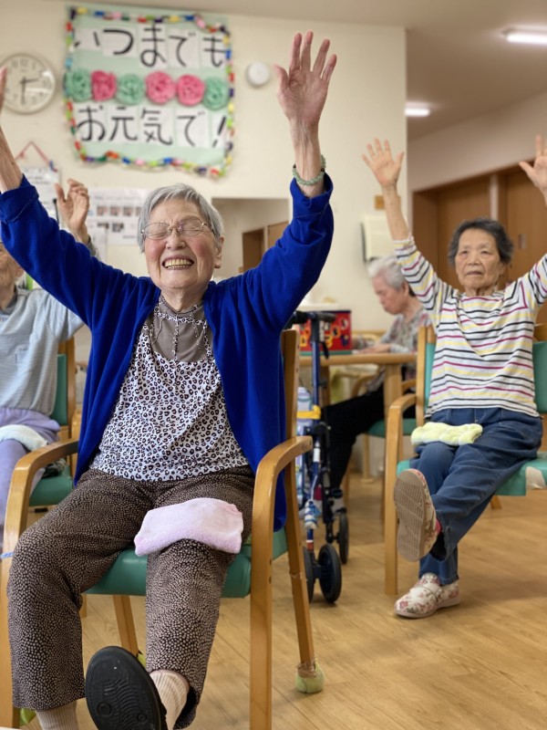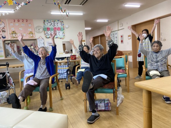 体操のレパートリーもいくつかあり、ご利用者様の体調に合わせた体操を行っております。