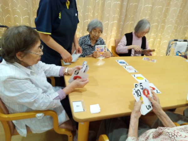 暑い日の午後に、久しぶりに特大トランプを使って七並べをして遊びました!