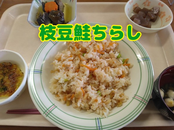 旬の枝豆と鮭の色味のバランスも良く、お味もちらし寿司風に三杯酢でサッパリ!