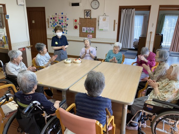 ホーム長から、「8月誕生日の方いますか?」「昭和30年頃はどんなでしたかね…」と声がかかるが返答はなく…