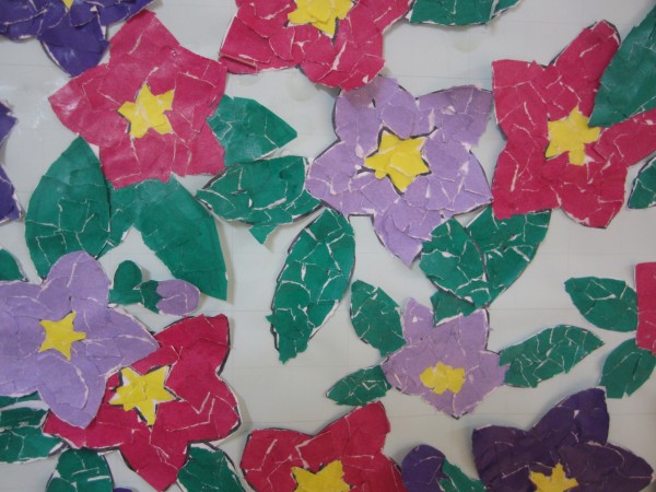 ★☆三橋6丁目にて桔梗の折り紙、貼り絵、飾り付けレクリエーション2022年(^^♬