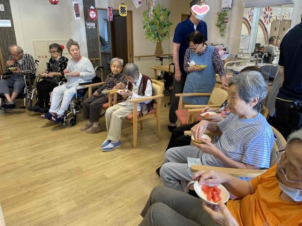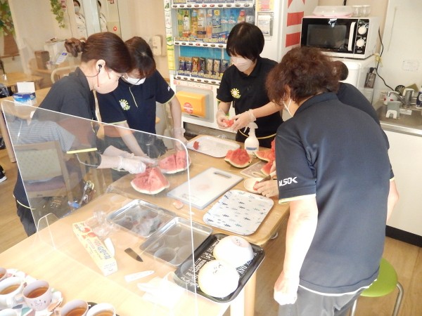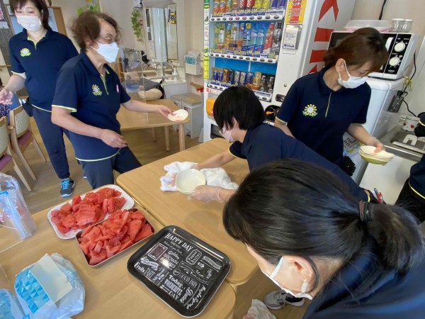 こちら(-その2-)では、割った“すいか”をご利用者の皆さまと一緒に美味しくいただいた様子をご紹介します(^_-)