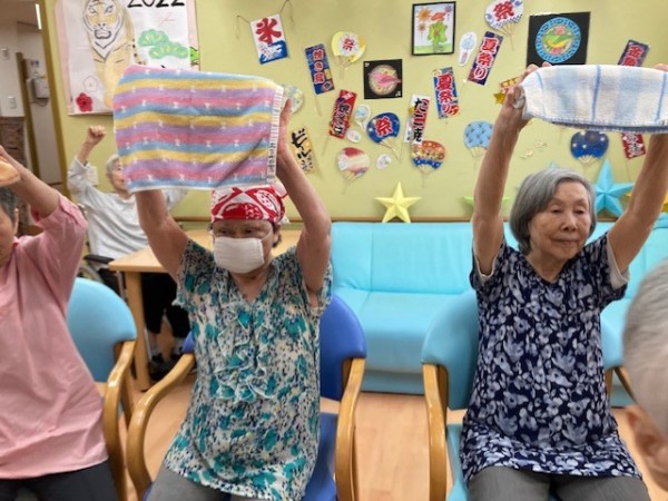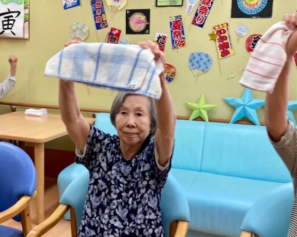グループホームみんなの家・墨田では、先月末にリモートでAK(あんしん・かんたん)体操として、タオルを使った体操を1階と2階のテレビにパソコンをつないで行いました。3階のご利用者様も2階へ移動して一緒に行いました。