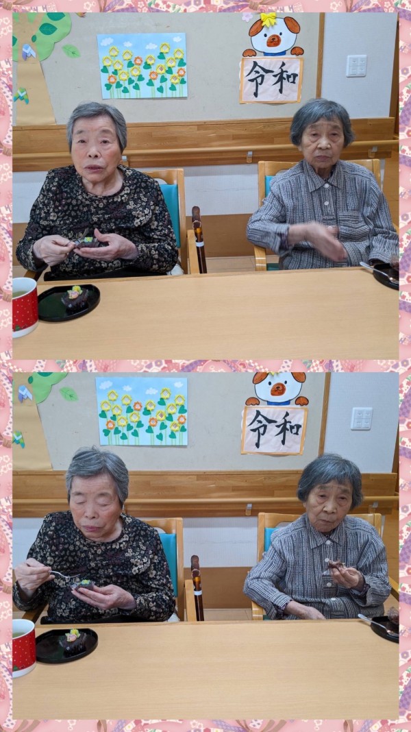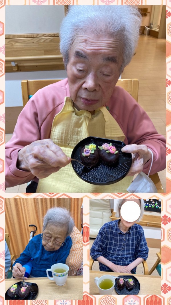 本日も体を元気に動かされ~体操の後のおやつにはとっても綺麗で美味しいおはぎを召し上がりました(*'ω'*)