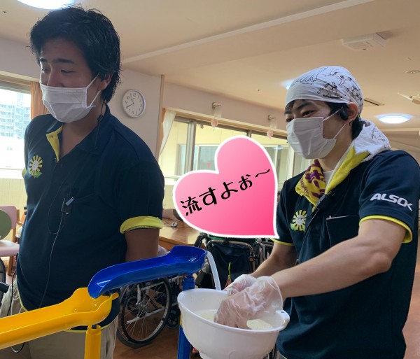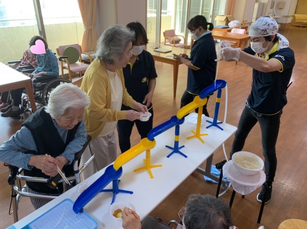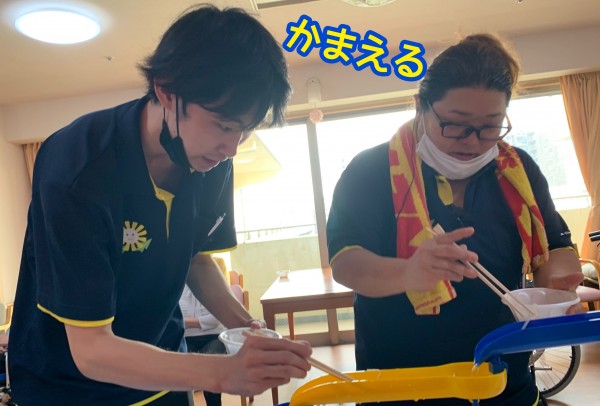 すこや家西尾久 流しそうめんを職員と