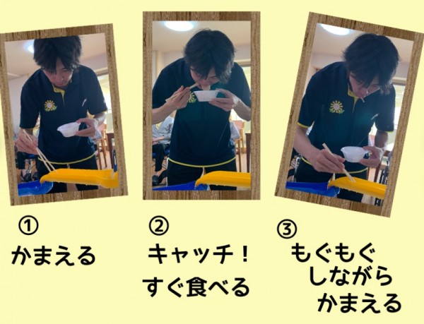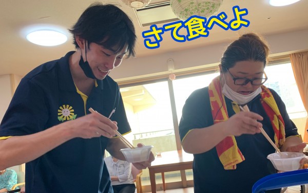 もう1人の「流しそうめん」担当の宮沢さんも呼んで食べてもらいます。